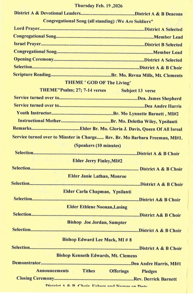 2026 Program for Temple #1 Annual 3 Day Meeting